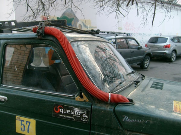 Суровое бездорожье — это всегда глубокие лужи, брода и речки. И если вода попадет в мотор — пиши-пропало. А потому просто обязательно нужно защитить мотор от попадания воды. Устанавливаем шноркель — он защищает мотор от попадания воды в клапана двигателя. некоторые выводят выхлопную трубу на крышку, чаще такое можно наблюдать на Уазах. Трубу выводят для того, чтобы, когда вы стоите/застряли в воде, выхлопные газы не попадали в салон. Как элемент тюнинга тоже смотрится эффектно, да и польза заметна.