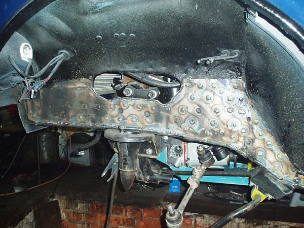 Обваривание накладки по контуру с последующим провариванием отверстий позволяет добиться почти полуторного повышения устойчивости кузовного узла к динамическим нагрузкам.